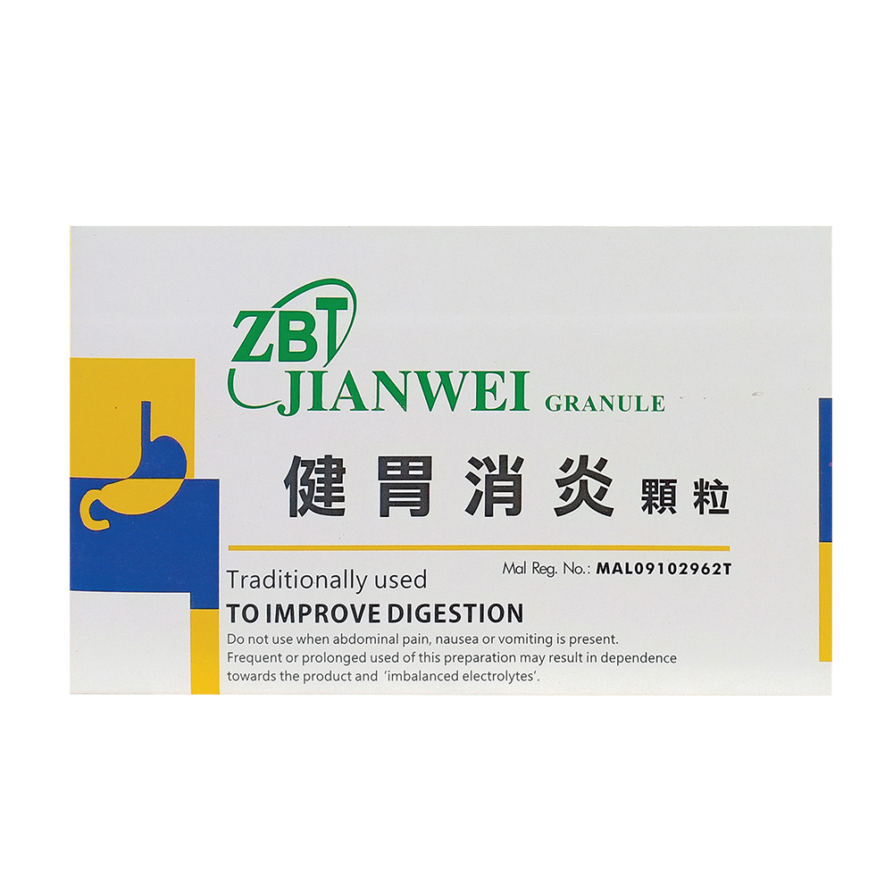 ZBT健胃消炎颗粒由12味中药所组成,通过以上5大药理作用,增强机体免疫力、改善胃粘膜局部微循环与调节胃部的功能。整个药方组合可健脾和胃,理气活血,适用于脾胃不和所致的胃脘疼痛,痞满纳差以及慢性胃炎出现的胃弱、胃痛、胃胀、胃热、胃凉等。